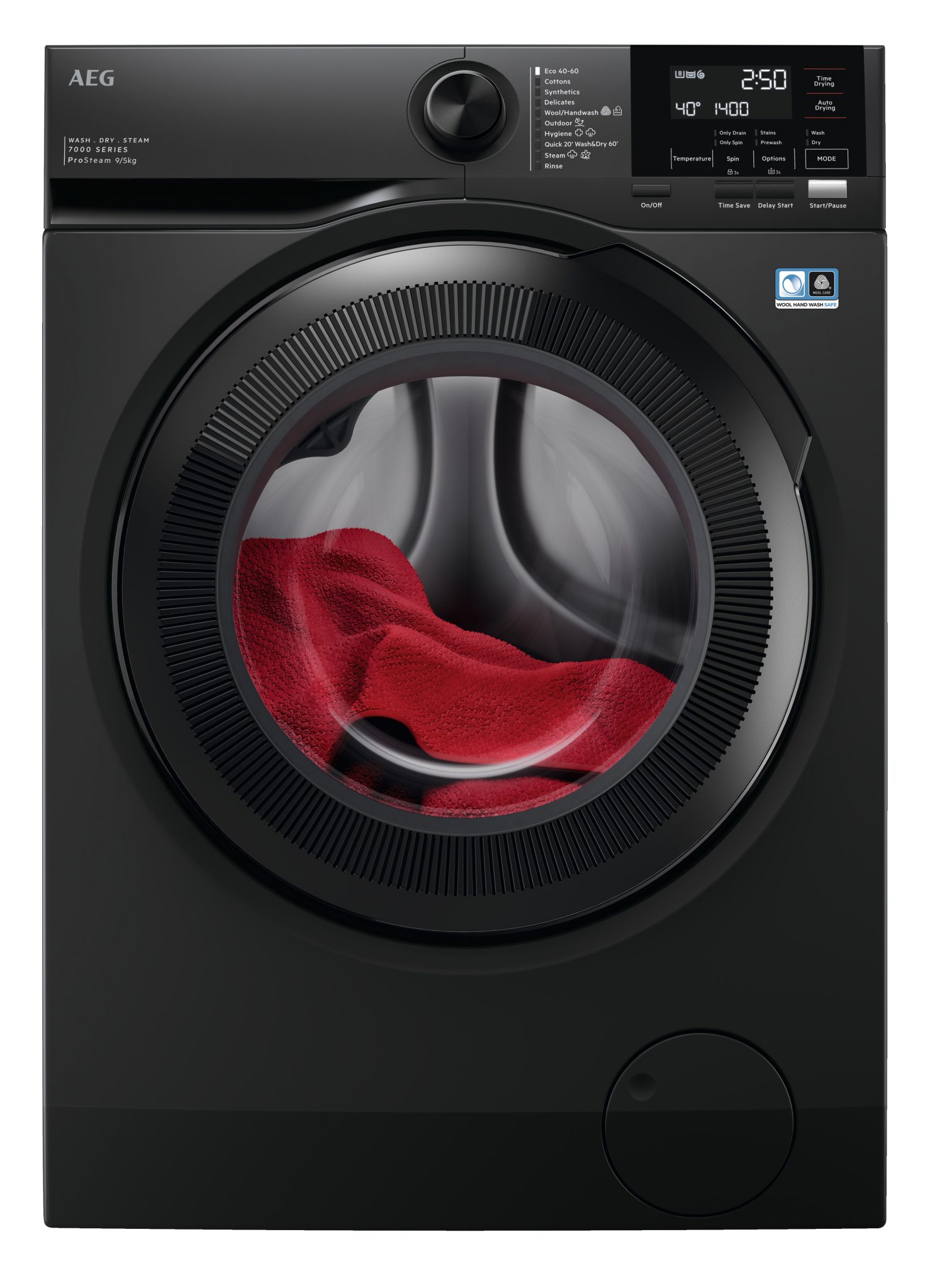 Vaske-tørremaskine fra AEG med dampgenopfriskning, vaskekapacitet på 9 kg og tørrekapacitet på 5 kg. Læs hele beskrivelsen