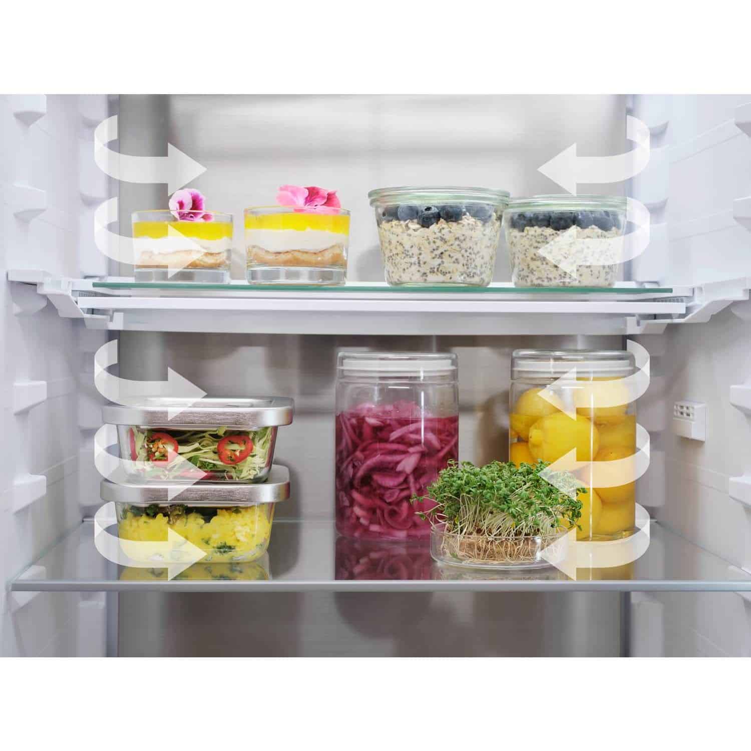 Multiflow systemet sikrer hurtig afkøling og en jævn temperatur i hele kølesektionen, mens CleanAir+ filteret renser luften og fjerner uønsket lugt, hvilket forbedrer holdbarheden og kvaliteten af maden.