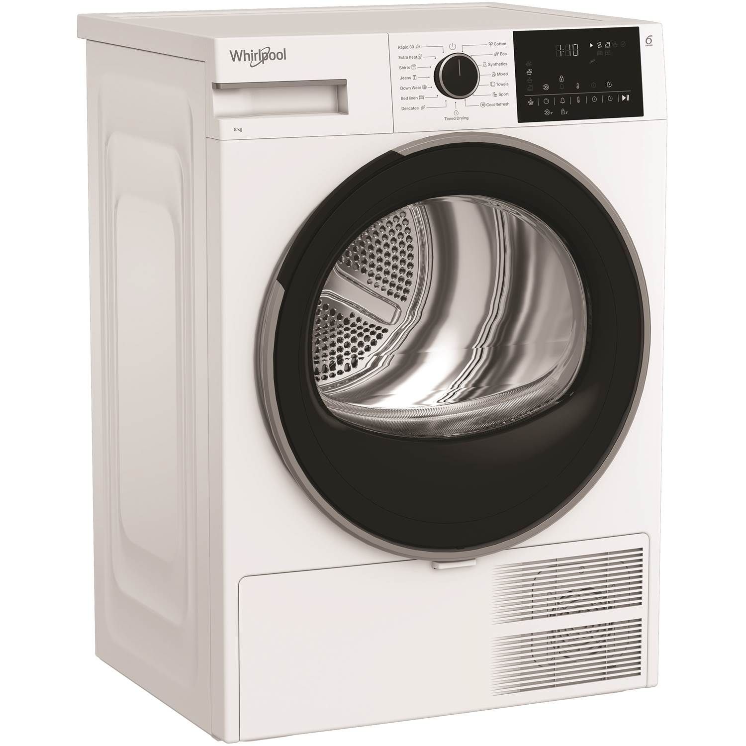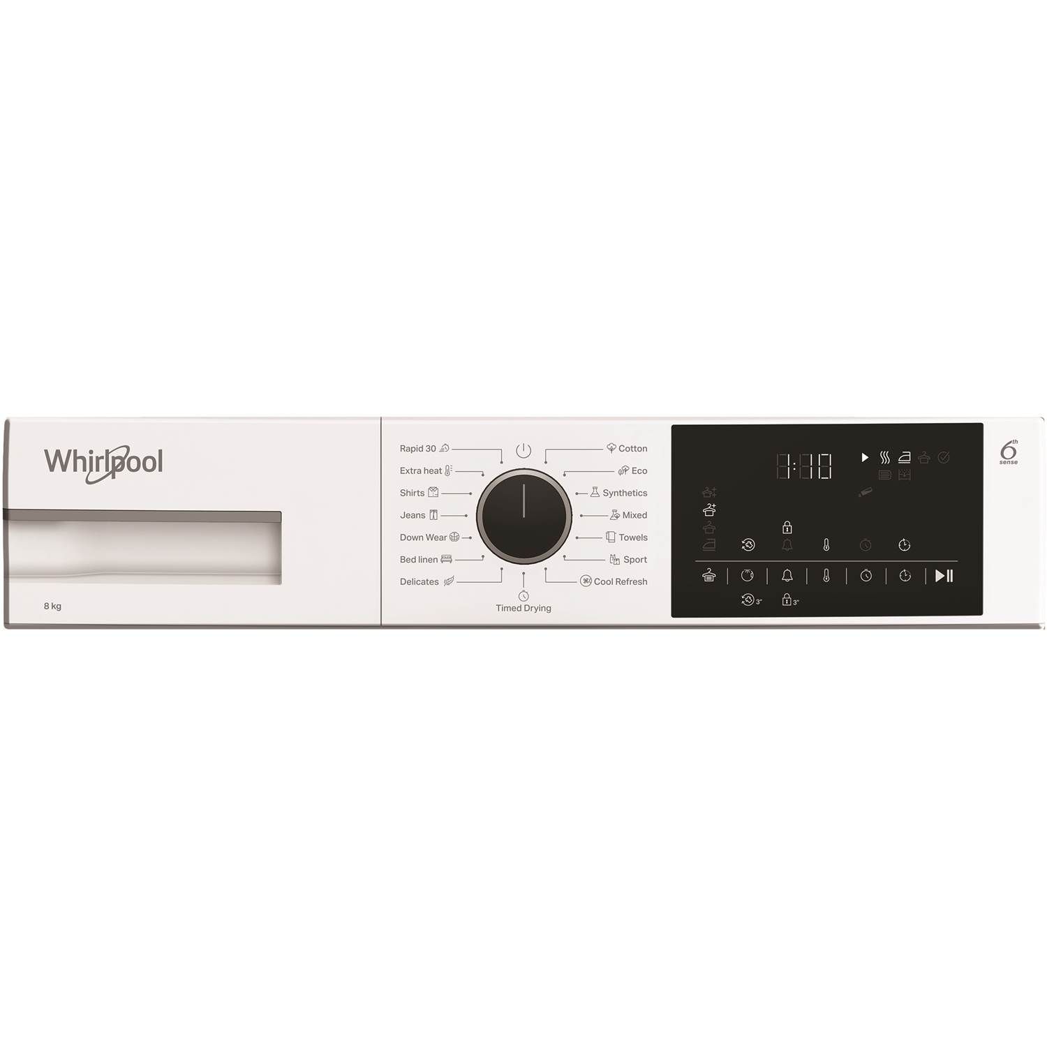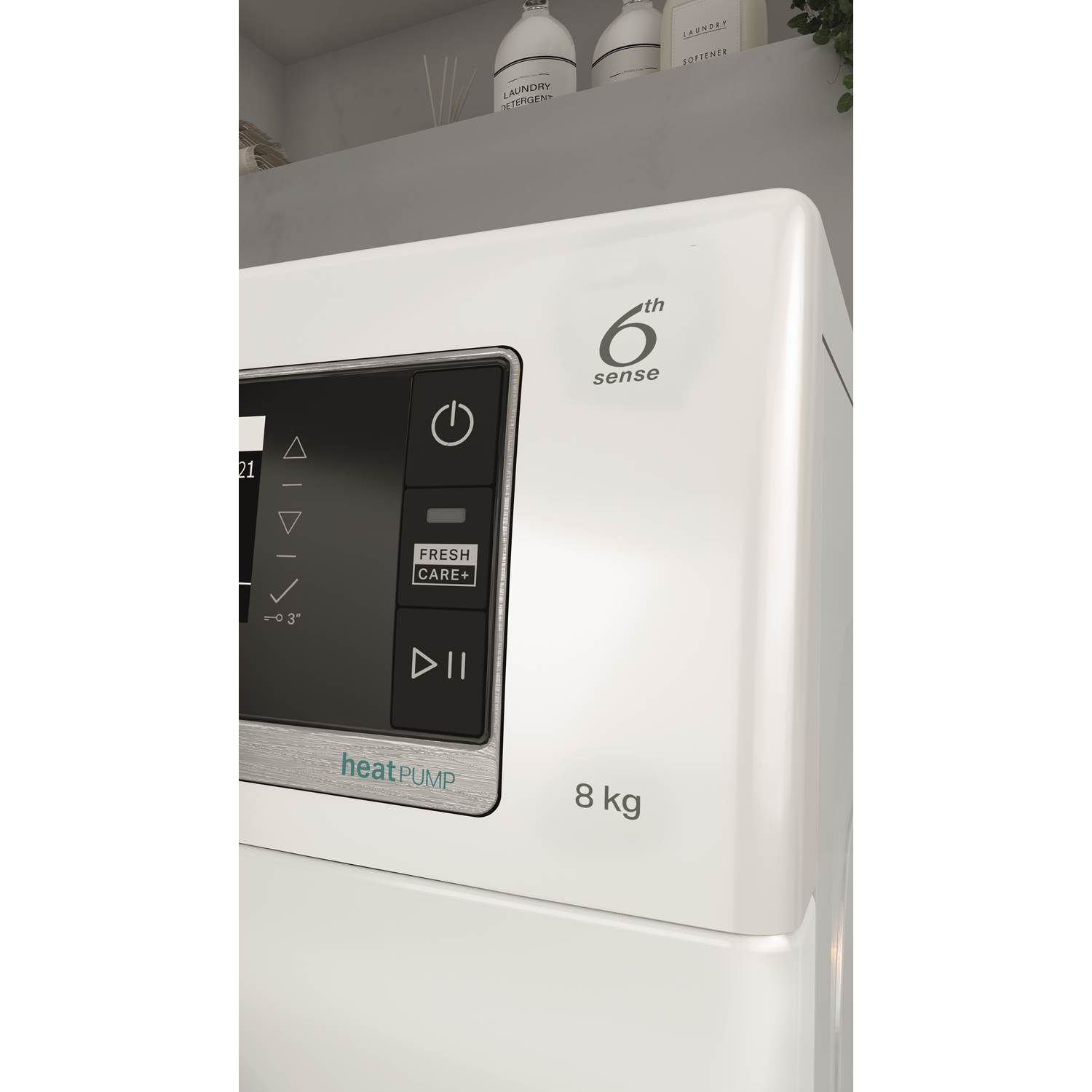 6TH SENSE registrerer automatisk mængden af vasketøj og indstiller den korrekte tørretid, hvilket sikrer det ønskede tørhedsniveau med optimering af tid og energi.
